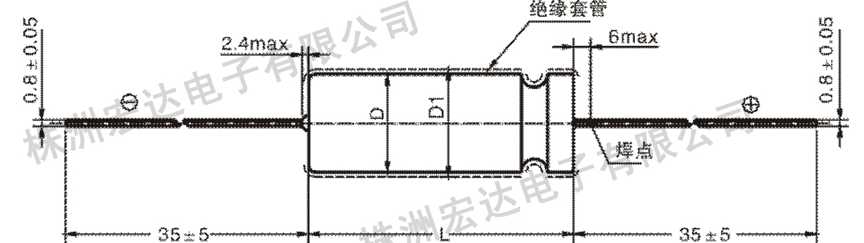 ·银外壳封装、气密封、圆柱形、轴向引出、外套绝缘套管、有极性;