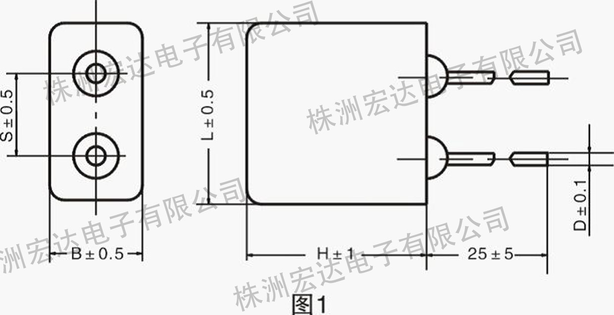 外形尺寸、额定电压、类别电压、标称电容量:见图1和表1